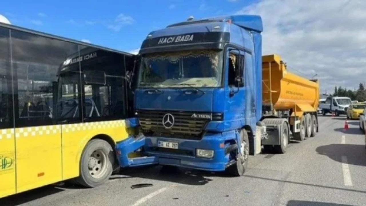 İstanbul'da Şile Otoyolu'nda duraktan çıkan İETT otobüsüne aynı istikametteki hafriyat kamyonu yandan çarptı.