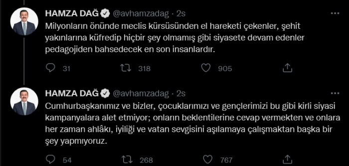 Milyonların önünde meclis kürsüsünden el hareketi çekenler, şehit yakınlarına küfredip hiçbir şey olmamış gibi siyasete devam edenler pedagojiden bahsedecek en son insanlardır.