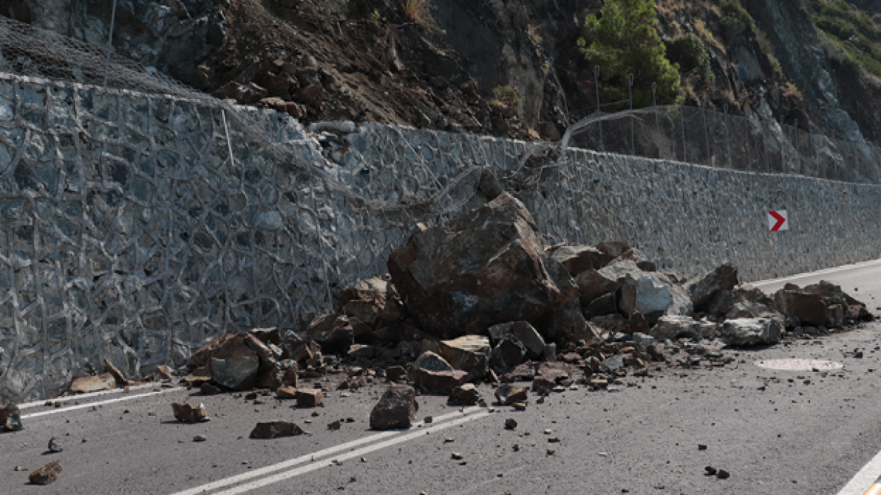 Hatay'da, Samandağ ile Arsuz ilçelerini bağlayan sahil yolu, düşen kaya parçaları nedeniyle ulaşıma kapandı.