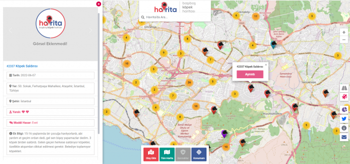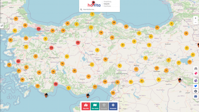 Başıboş köpek saldırısına uğrayan veya sokak köpek sürüleriyle karşılaşan vatandaşların konum bilgisi ve fotoğraf paylaşabilecekleri bir site olarak kurulan Havrita bir süredir çok kullanılan bir site olarak karşımıza çıkıyor.