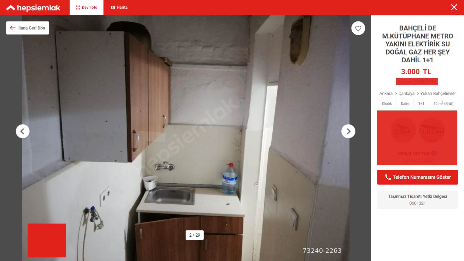 Dairenin Çankaya ilçesinin Bahçelievler semtinde bulunması ön plana çıkarılarak konumuna vurgu yapılan ilanda görseller ise hayret verici durumdaydı.