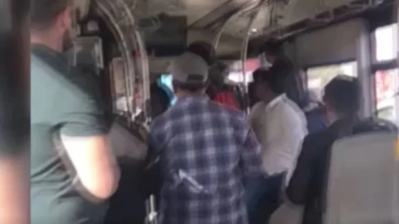 Görüntüde, otomobil sürücüsünün aracının bagajından çekicini alarak otobüs şoförüne saldırmaya çalıştığı ve çevredeki vatandaşlar tarafından engellendiği görüldü.