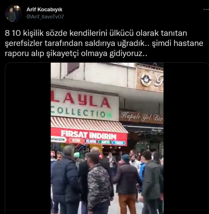 Arif Kocabıyık, Twitter hesabından sokak röportajı yaptığı sırada saldırıya uğradığını açıkladı. Arif Kocabıyık, saldıran kişilerin kendilerini "ülkücü" olarak tanıttığını iddia etti. Darp raporu alarak şikayetçi olacağını söyleyen Kocabıyık'ın paylaşımı şöyle: