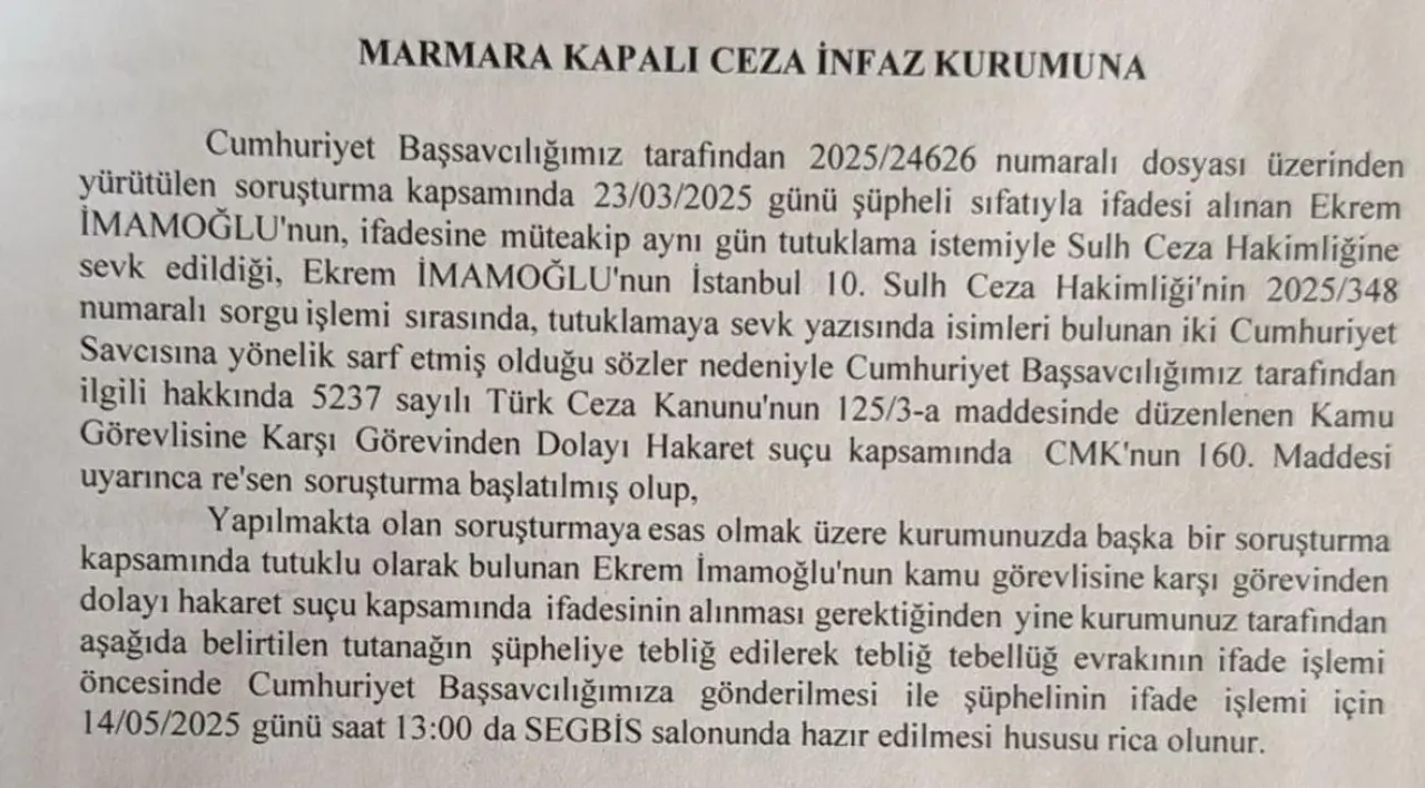 İmamoğlu’nun kendisini “terör” ile ilişkilendirilmesine ilişkin suç isnatları üzerine verdiği ifade üzerine “kamu görevlisine görevinden dolayı hakaret” iddiasıyla soruşturma düzenlendi.