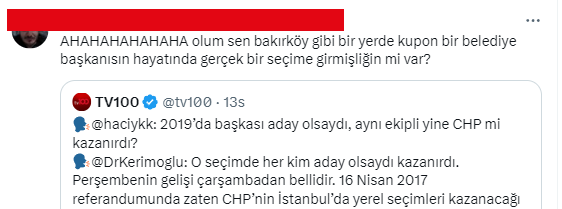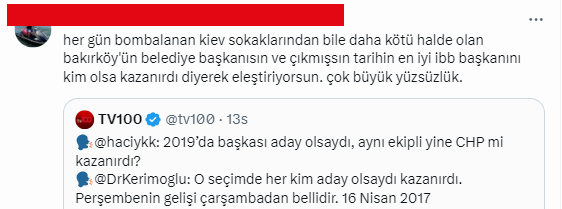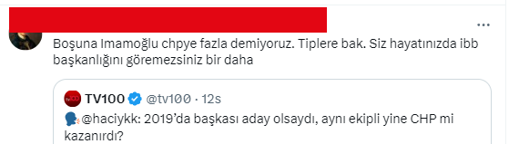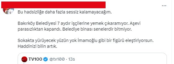 CHP'nin yerel yönetimler konulu toplantısında konuşması sonrası İstanbul Büyükşehir Belediye Başkanı Ekrem İmamoğlu'nun "Bakırköy’de sokağa çıkacak yüzü olmayanlara neden kürsü veriyorsunuz" ifadesine;