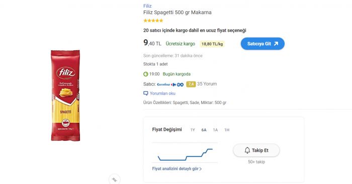 Geçen sene ise aynı makarnayı yarı fiyatından daha ucuza alabiliyordu.