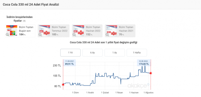 Tam bir yıl öncesinde baktığımızda 50 penilik bir zam geldiğini görüyoruz.