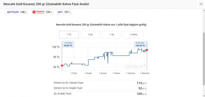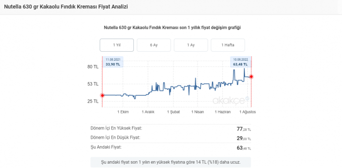 Bir yıl öncesinde aynı tarihe baktığımızda fiyatında hiçbir değişiklik olmadığını görüyoruz.