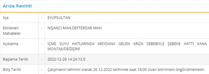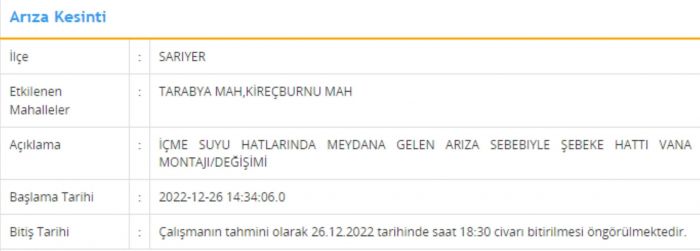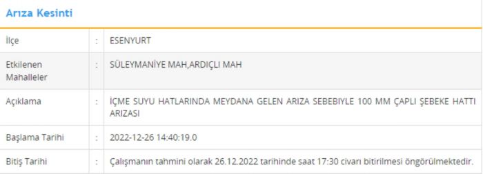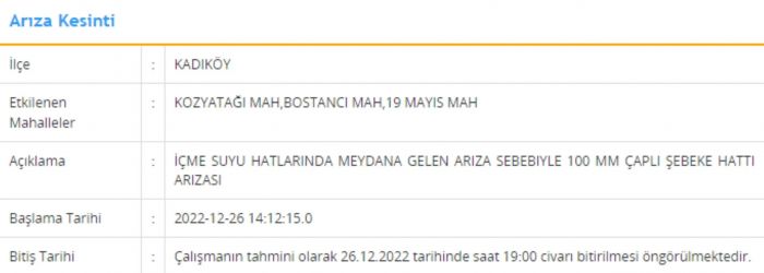 İşte 26 Aralık 2023 Cuma günü su kesintisinin yapılacağı ilçeler ve ayrıntılar...