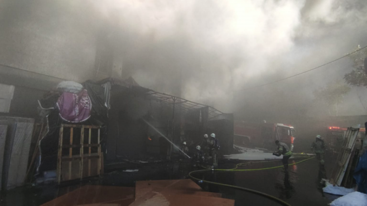 Bahçelievler'de yatak ve baza imalathanesinde çıkan yangını söndürme çalışmaları sürüyor.