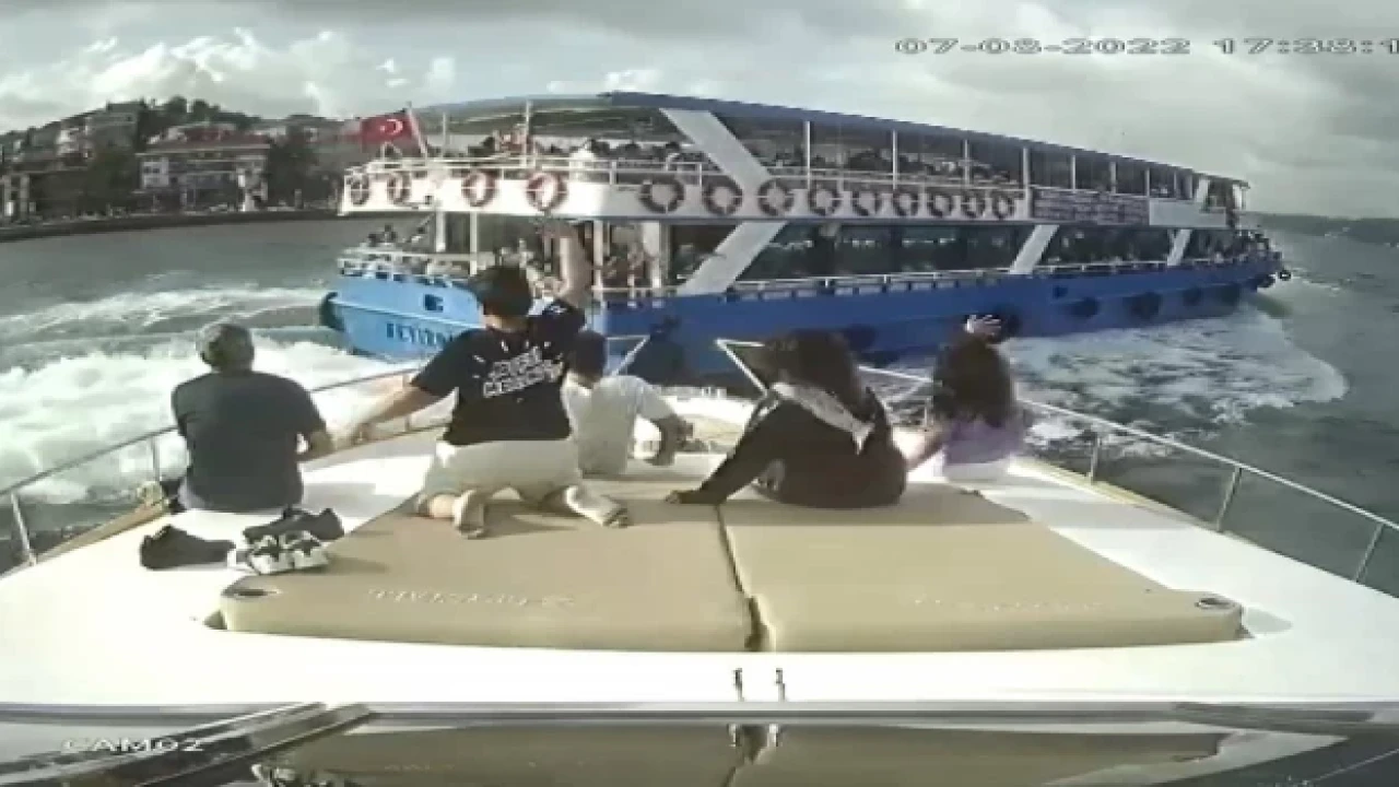 Olay geçen Pazar günü saat 17:00 sıralarında yaşandı. Arnavutköy, Akıntıburnu açıklarında seyreden yatın önüne aniden çıkan yolcu teknesi az kalsın faciaya neden oluyordu. Yatın ön bölümünden boğazdaki teknelere el sallayan aile bir anda tehliye ile burun buruna geldi. Yat kaptanı son anda yaptığı manevrayla olası bir faciayı engelledi. Yaşanan olay yatın güvenlik kamerasına yansıdı.