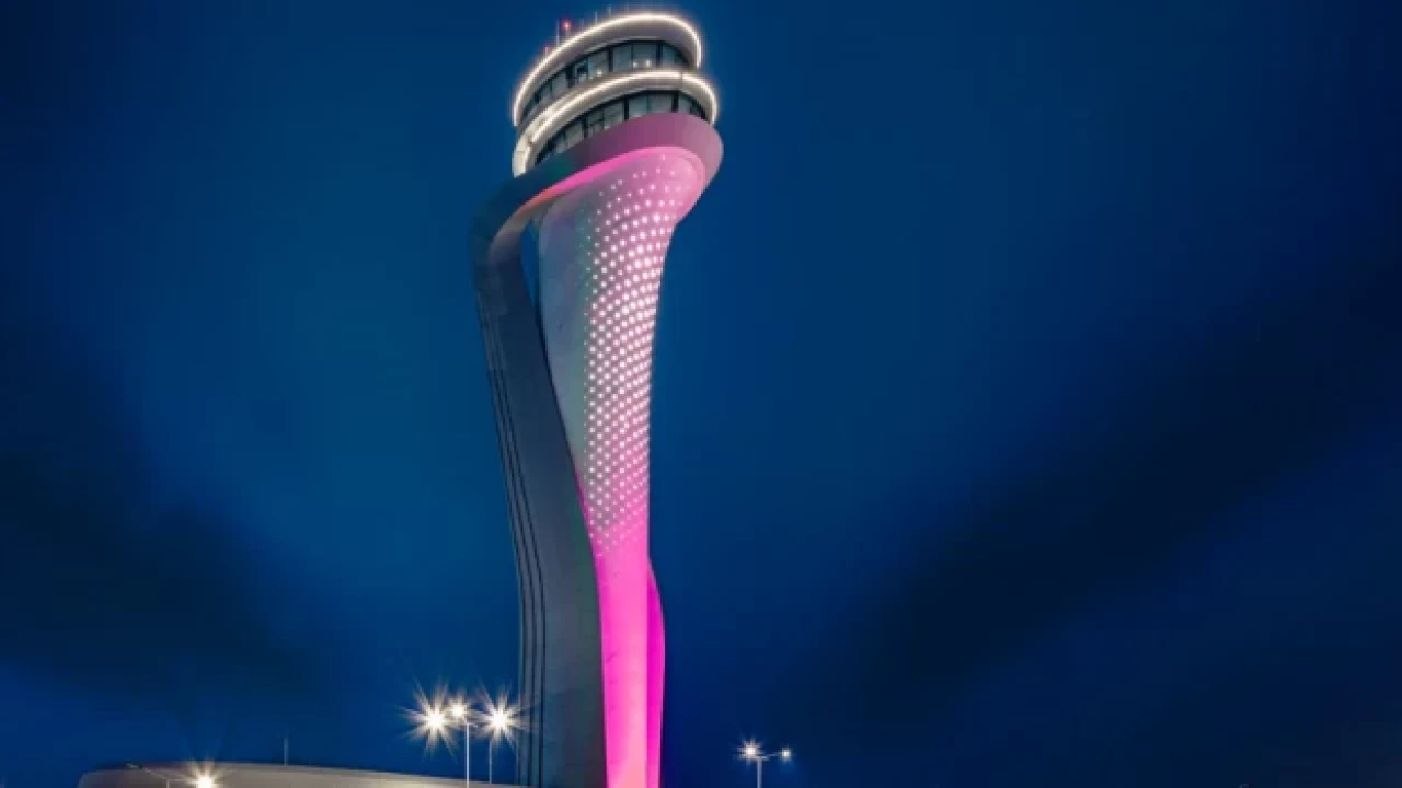 İstanbul Havalimanı hava trafik kontrol kulesi, meme kanserinde erken tanıya dikkati çekmek amacıyla pembe ışıkla aydınlatıldı.