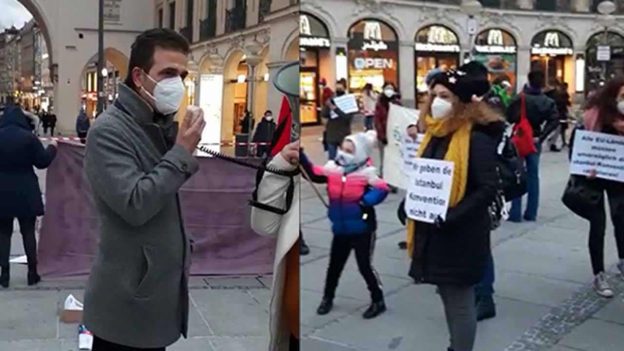 Türkiye'nin İstanbul Sözleşmesi'nden çekilmesine ilişkin Almanya'nın Münih kentinde bir araya gelen yurttaşlar, alınan kararın geri çekilmesini talep etti.