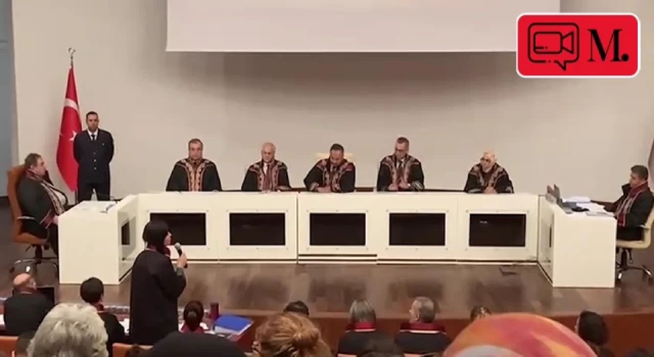 Danıştay'da görülen davada katledilen kadınların isimleri ve hikâyelerini anlatan avukat Müjde Tozbey Erden'in konuşması sırasında katledilen kadınların yakınları salonda ayağa kalkarak fotoğraflarını açarak "Buradayım" dedi.
