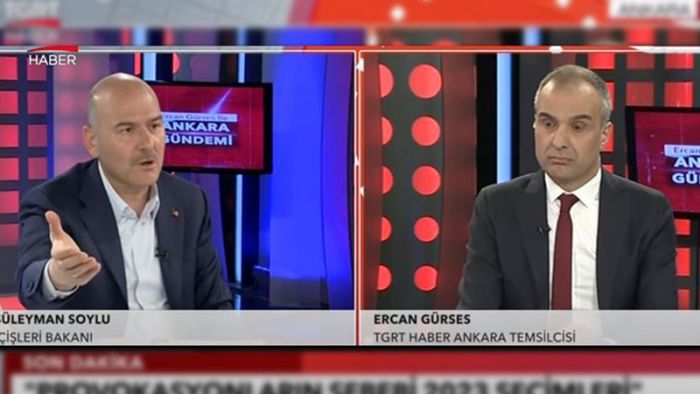 İçişleri Bakanı Süleyman Soylu, TGRT Haber kanalında açıklamalar yapıyor. Canlı yayın sunucusu Ercan Gürses'in “1 milyon 305 bin sığınmacının İstanbul’da olduğu söyleniyor” sözlerine Soylu, “Yok 13 milyon sığınmacı…. 33 milyon sığınmacı… 53 milyon sığınmacı… Bu yalanlardan bıktık vallahi…” dedi.