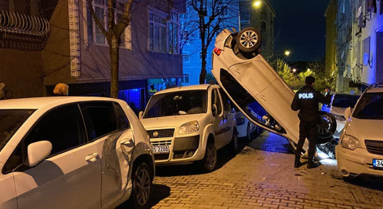 Alınan bilgiye göre, Siyavuşpaşa Mahallesi Akasya Sokak'ta, E.Y yönetimindeki 34 SK 3916 plakalı otomobil, park halindeki araçlara çarptıktan sonra, bir aracın üzerinde asılı kaldı.