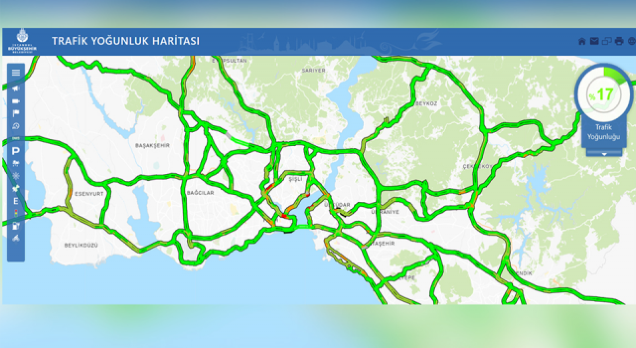 İBB trafik uygulamasına göre saat 18.15 itibarıyla kent genelinde trafik yoğunluğu yüzde 17 olarak ölçüldü.