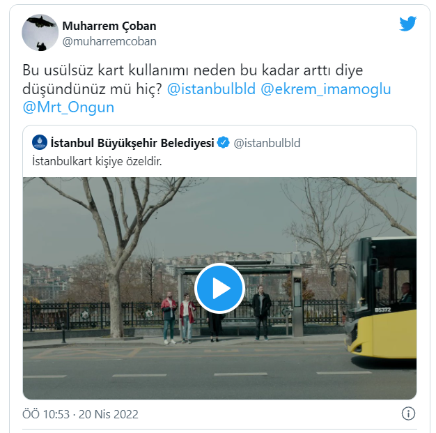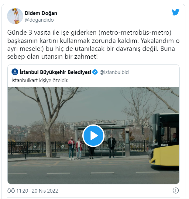 Videonun sonunda ise "İstanbulkart kişiye özeldir, usulsüz kart kullanımı cezalandırılır" yazısı yer alıyor.