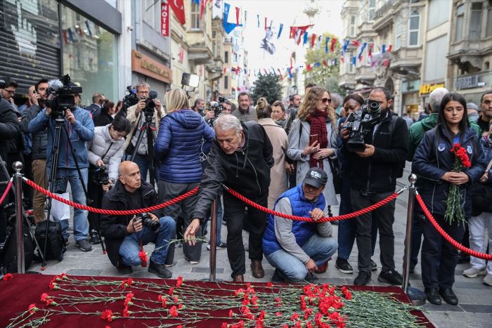Beyoğlu Kaymakamı Mustafa Demirelli ile Beyoğlu Belediye Başkanı Haydar Ali Yıldız, patlamanın meydana geldiği İstiklal Caddesi'ndeki alana yaşamını yitirenlerin anısına karanfil bıraktı.