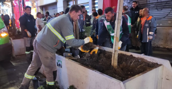 150 ağacın sökülmesinin ardından caddedeki 90 beton saksı da vinç yardımıyla kaldırılacak. Ağaçların daha sonra parklara dikileceği açıklandı.