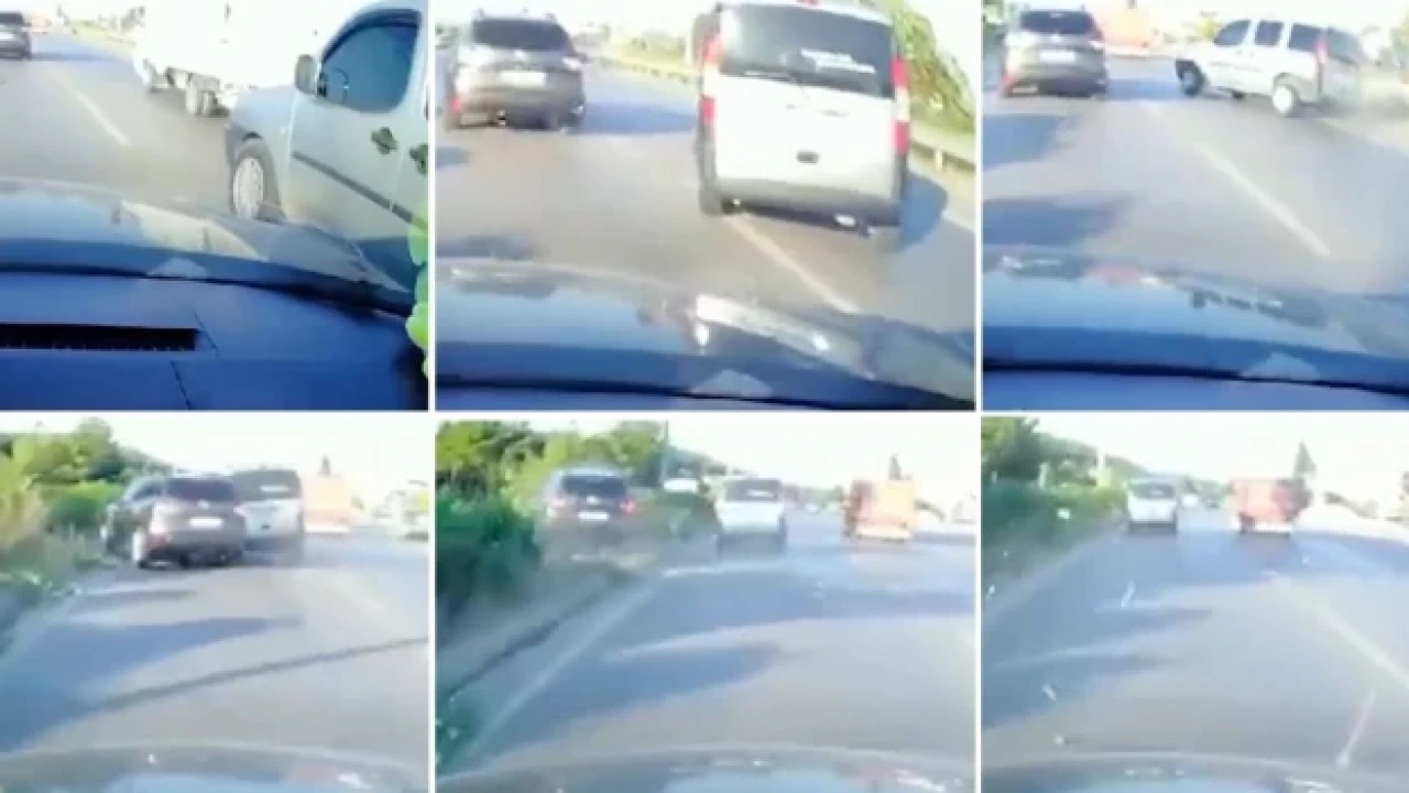 Görüntülerde, Gaziemir ilçesinden Torbalı yönüne ilerleyen otomobilin, aynı yönde ilerleyen ve makas atan hafif ticari aracın çarpması sonucu kontrolden çıkması yer alıyor.