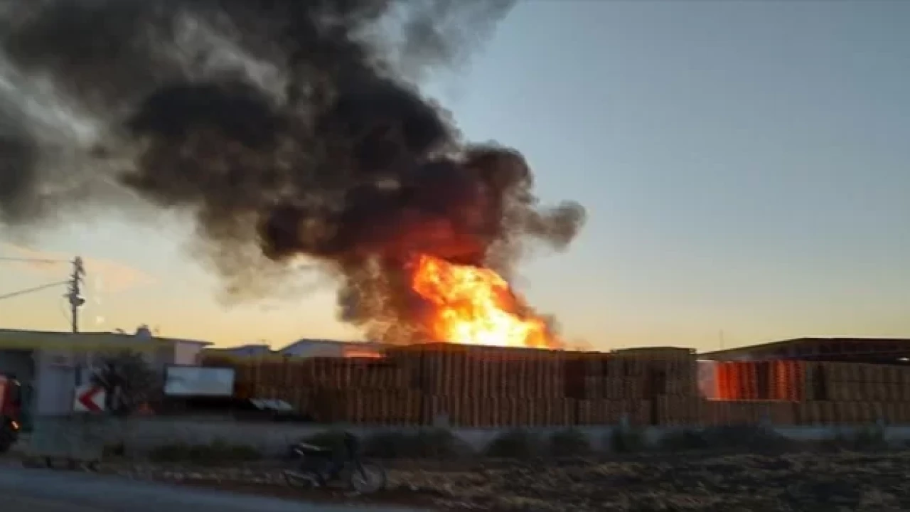 Pancar Mahallesi'ndeki palet fabrikasında henüz belirlenemeyen nedenle yangın çıktı.