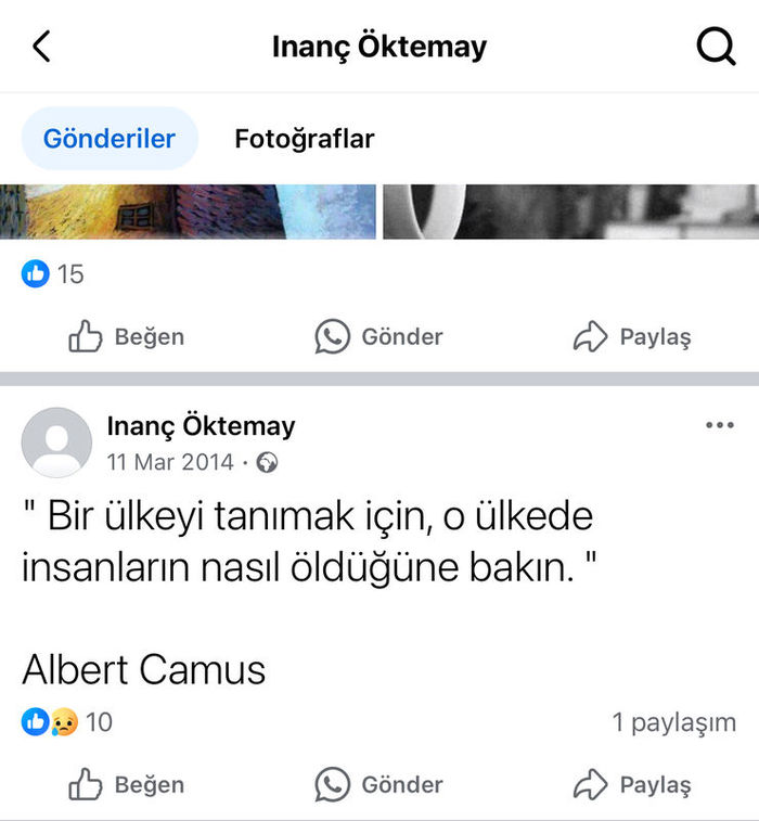 İkinci el antika eşya alım- satımı yaparak geçimini sağladığı öğrenilen İnanç Öktemay'ın 2014 yılında, "Bir ülkeyi tanımak için, o ülkede insanların nasıl öldüğüne bakın" şeklinde yaptığı paylaşım dikkat çekti.