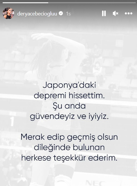Japonya'da forma giyen milli voleybolcu Derya Cebecioğlu, 7.4'lük depreme yakalandı