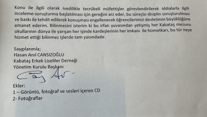 İstanbul Kabataş Erkek Lisesi mezunlarından Anıl Cansızoğlu, sosyal medya hesabından lise müdürü Muharrem Bayrak’ı etiketleyerek lise yurdunun yatakhanesinde sohbetler yapıldığını söylemişti.