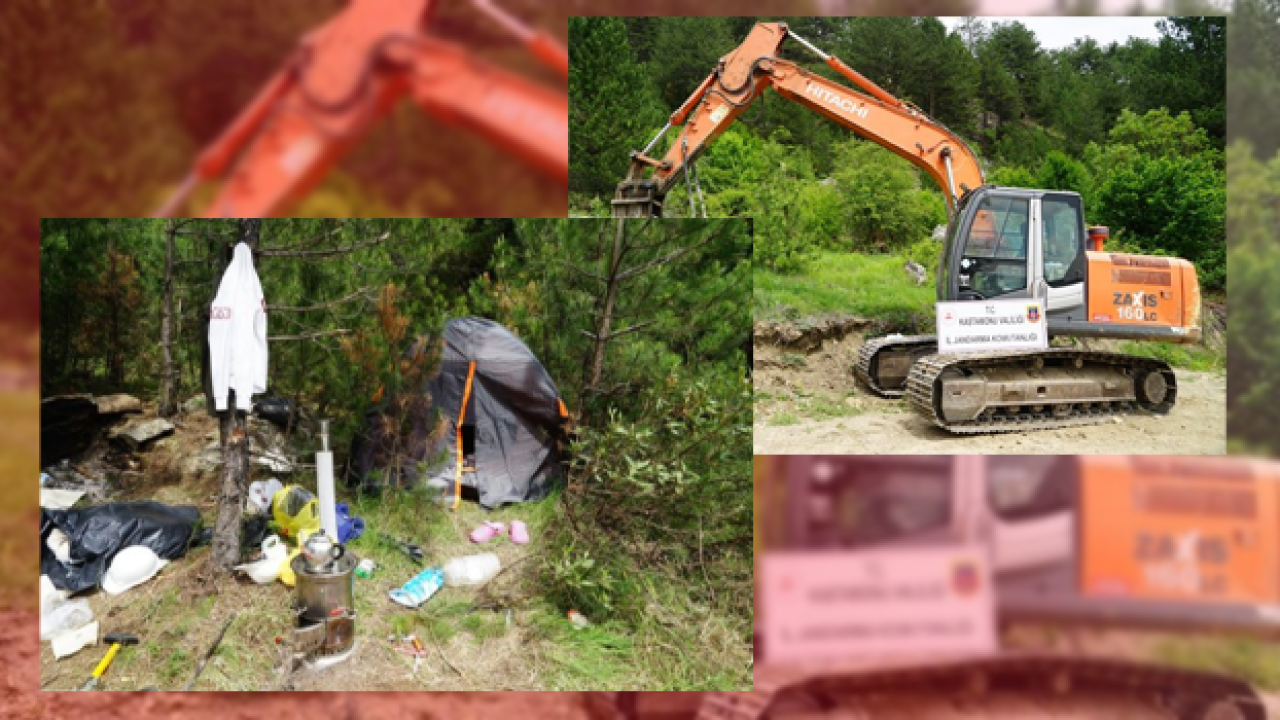 Şahısların kendilerine resmi görevli süsü vererek define aramak amacıyla iş makineleri yardımıyla kazı yaptıklarını belirleyen jandarma ve Orman Bölge Müdürlüğü ekipleri, bölgede yaptıkları aramada ruhsatsız silahlar, kazı amaçlı malzemeler ile kazıda kullandıkları iş makineleri ile araçlara da el koydu. Şahısların emniyetteki işlemleri devam ediyor.