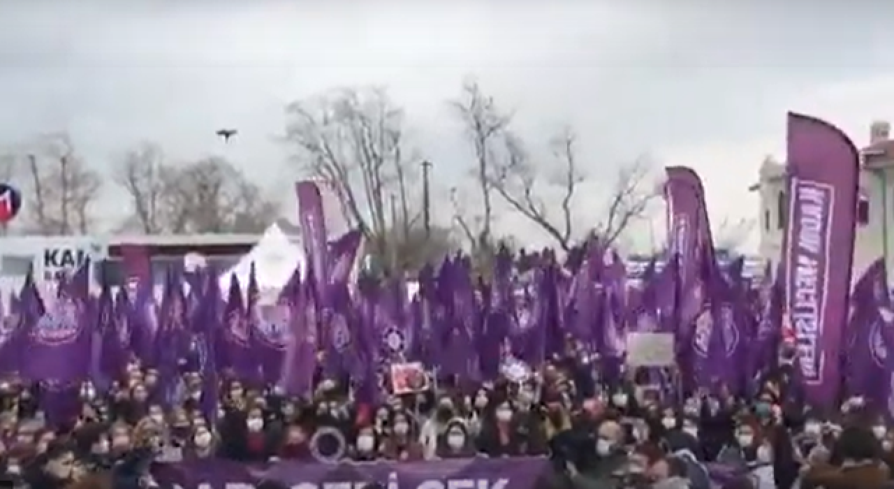 İstanbul'da kadınlar, Kadıköy'de buluşarak Erdoğan'ın İstanbul Sözleşmesi'nde çekilme kararını protesto ediyor.
