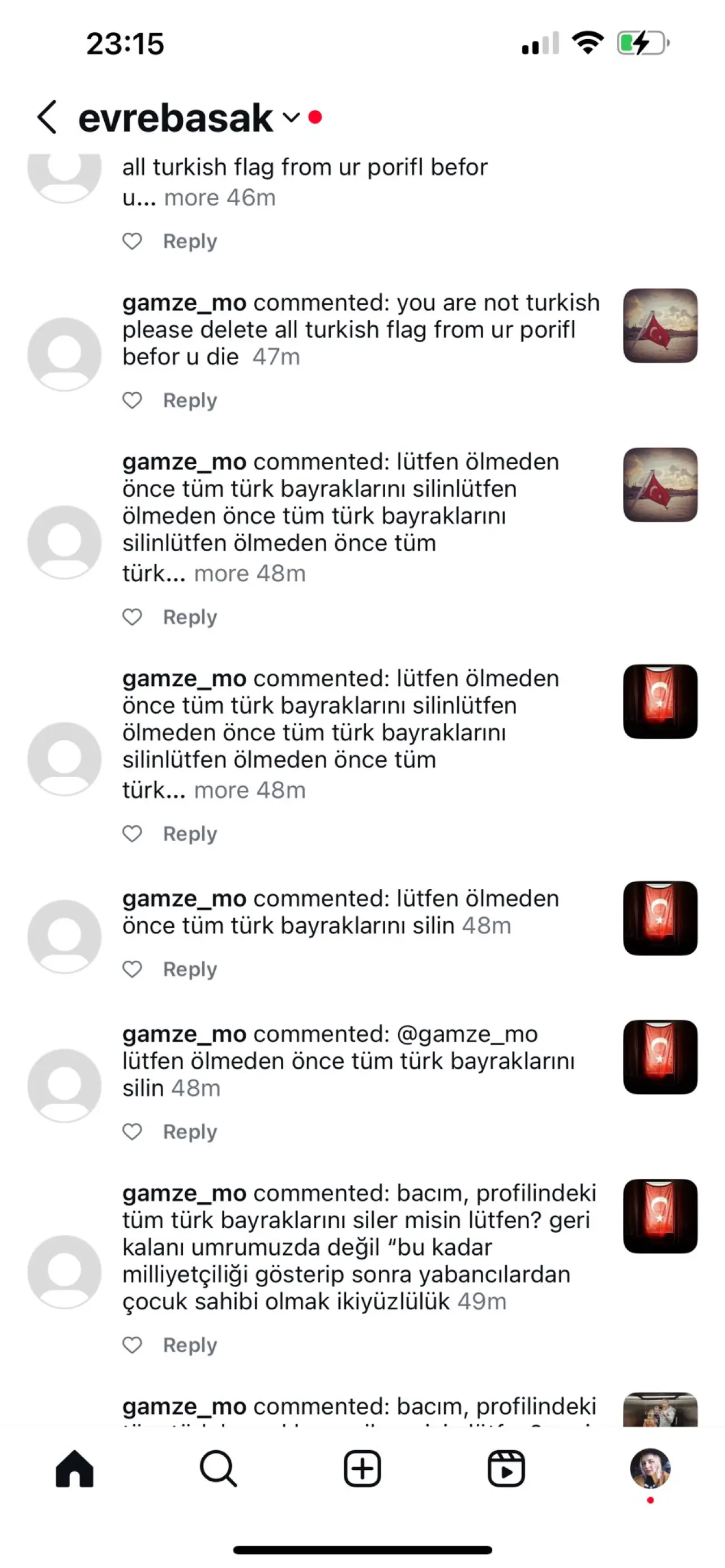 Ancak bu duyarlılık çağrılarının hemen ardından, Clarke sosyal medyada ırkçı bir saldırının hedefi oldu. Instagram’da “gamze_mo” adlı kullanıcı tarafından Clarke’ın profilinde yer alan Türk bayraklarına yönelik “Ölmeden önce tüm Türk bayraklarını sil” şeklinde tekrarlanan nefret içerikli yorumlar tepkilere yol açtı. Clarke, bu yorumları ifşa ederek “Milletin derdine bakın” diyerek yaşadığı şaşkınlığı ve öfkeyi dile getirdi.