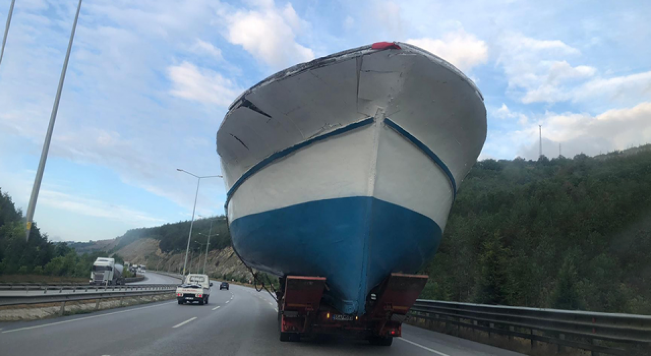 Muhalif. GÜNDEM Karayolunda 21 metrelik tekne görüldü!