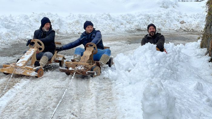 "Kışın daha güzel ve heyecanlı. Çok eğlenceli. Bunu tahta arabayla kaymayan bilemez."