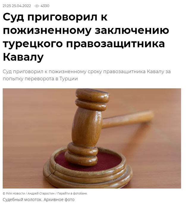 Rus devlet ajansı RIA Novosti de Osman Kavala'yı insan hakları aktivisti olarak nitelendirirken, geçen ekim ayında Kanada, Fransa, Finlandiya, Danimarka, Almanya, Hollanda, Yeni Zelanda, Norveç, İsveç ve ABD büyükelçiliklerinin Kavala'nın serbest bırakılması için çağrı yapmasının 10 büyükelçi krizine sebep olduğunu hatırlattı.