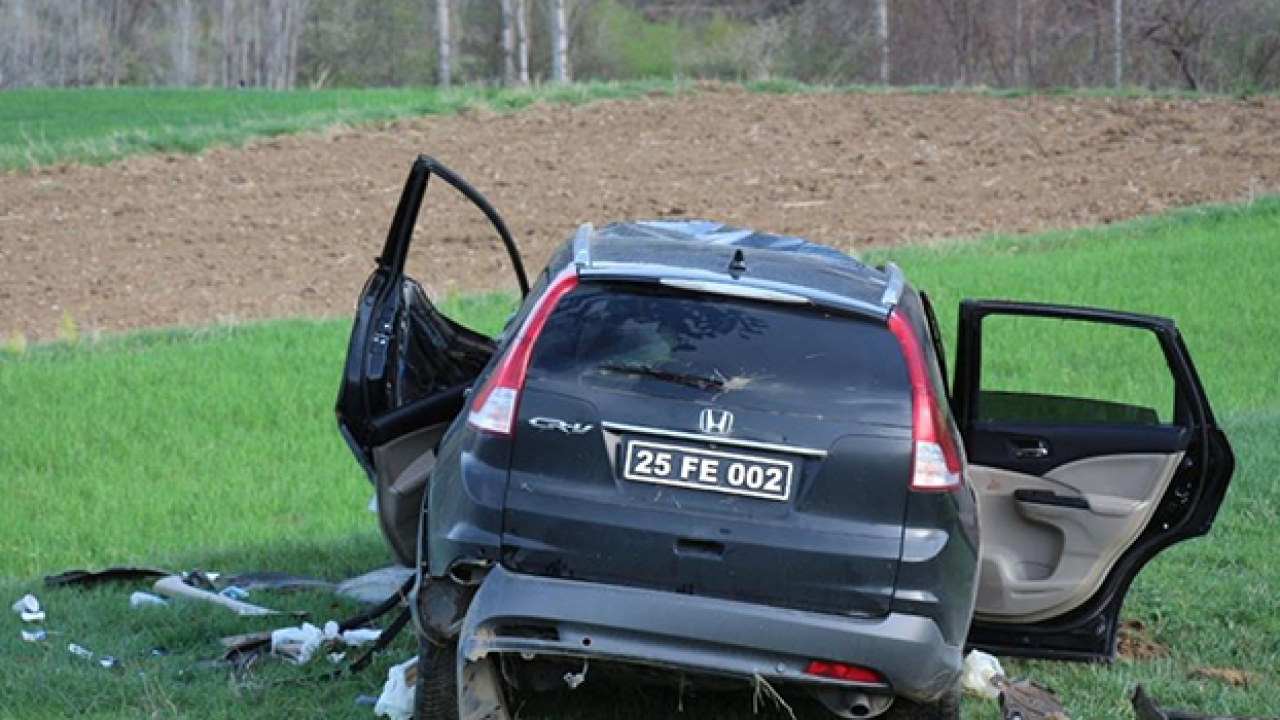 Olur Kaymakamı İlker Eker ve Olur Belediye Başkanı Sıddık Demircan, Koruma Polis Memuru Murat Keskin’ın içinde olduğu Sinan Yıldırım yönetimindeki 25 FE 002 plakalı makam aracı, Oltu Kaleboğazı mevkisinde şarampole yuvarlandı.