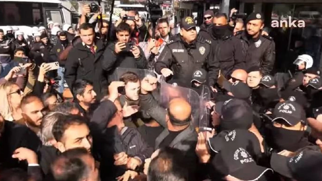 Milletvekili Engin Altay ve partili diğer isimlerin de aralarında bulunduğu CHP heyeti, belediye binasına girmeye çalıştı ancak güvenlik güçlerinin engeliyle karşılaştılar. Emniyet yetkilileriyle yapılan müzakerelerden sonuç alınamayınca, CHP heyeti engellenmeyi alkışlarla protesto etti ve belediye binası önünde oturma eylemi başlattı.