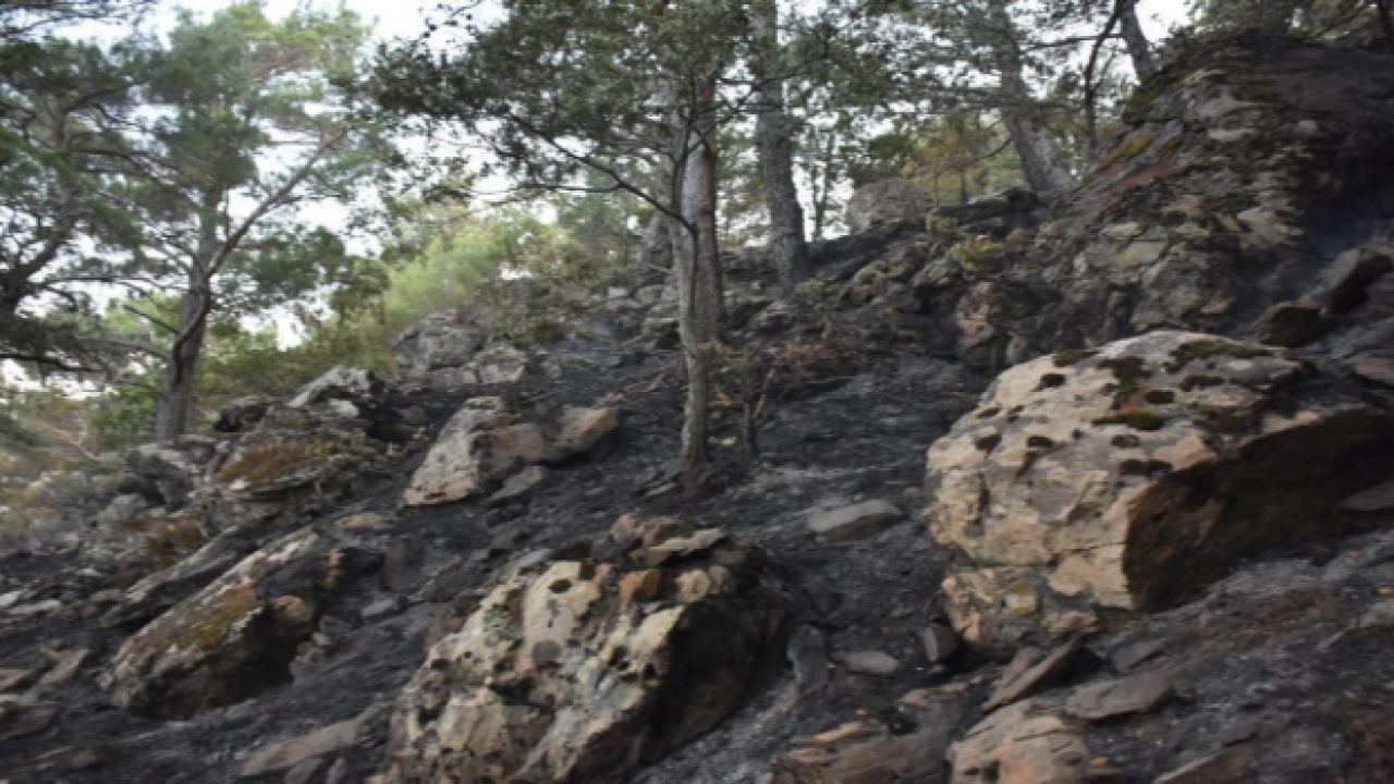 Yangın çıkan arazinin sarp olması ve dar patikalar nedeniyle yerden yürütülecek çalışma için ekipler, olay yerine güçlükle ulaşabildi. İş makineleriyle yol açılarak ekiplerin geçişi sağlandı.