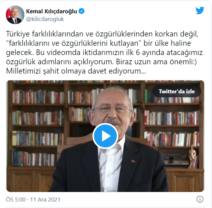 CHP Genel Başkanı Kemal Kılıçdaroğlu, Twitter hesabından CHP Genel Merkezi'nde çektiği bir videoyu paylaştı.