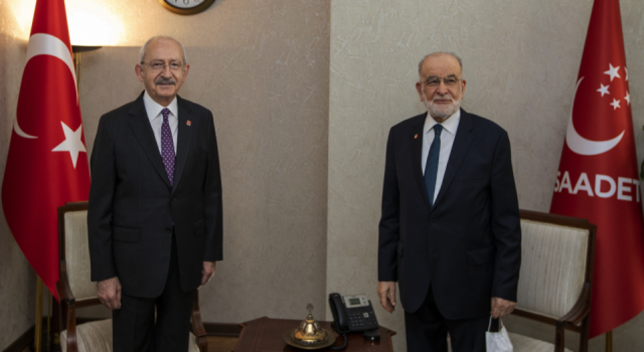 CHP Genel Başkanı Kemal Kılıçdaroğlu, partisinin genel merkezinde ziyaret ettiği Saadet Partisi Genel Başkanı Temel Karamollaoğlu ile bir araya geldi.