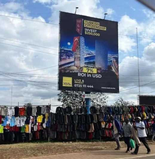 Afrika ülkelerinden Kenya'da Türkiye Cumhuriyeti vatandaşlığının bit pazarında reklamı yapıldığı ortaya çıktı.