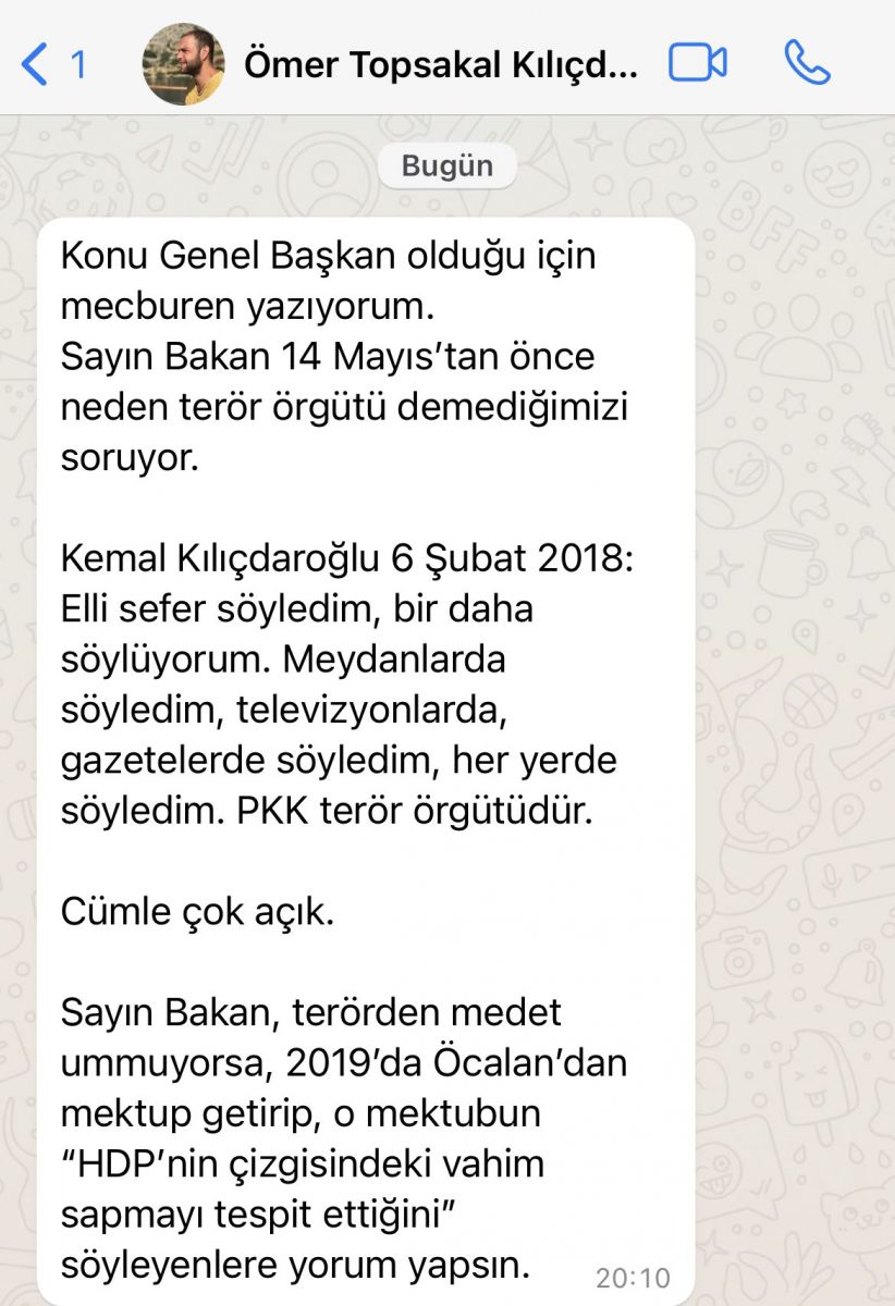 Kılıçdaroğlu tarafından yanıtının ikinci kısmı okunmadığı için eleştirilen Kübra Par, sosyal medya hesabından yaptığı paylaşımla, Kılıçdaroğlu'nın basın sözcüsü Ömer Topsakal'dan gelen yanıtı paylaştı.