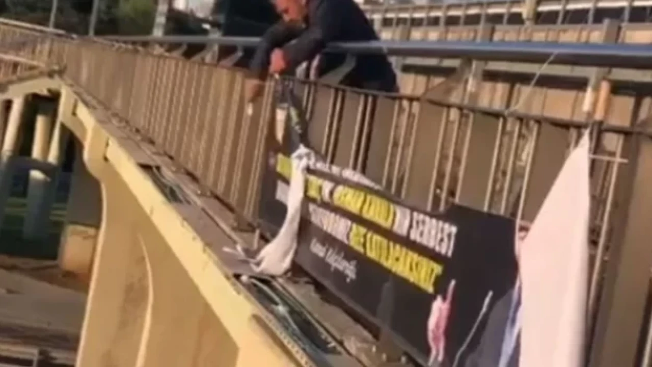 İmzasız şekilde hazırlanarak asıldığı görülen pankart, bir yurttaş tarafından indirildi.
