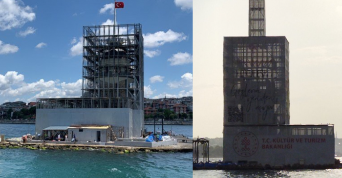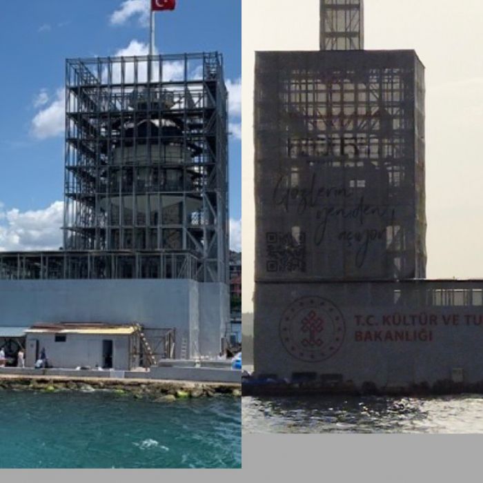 Geçtiğimiz günlerde restorasyon sürecinde olan Kız Kulesi ile ilgili birçok iddia ortaya atıldı. Sosyal medyada yapılan paylaşımlarda; kulenin üzerini örten örtünün arka tarafından göründüğü bunun da yıkılmasından dolayı olduğu öne sürüldü.