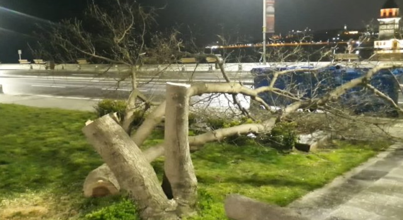 Üsküdar'da Kız Kulesi'nin hemen karşısında sahilde yer alan ağaçlar, gece saat 02.00 sıralarında 4 kişi tarafından ellerindeki motorlu testerelerle kesildi.