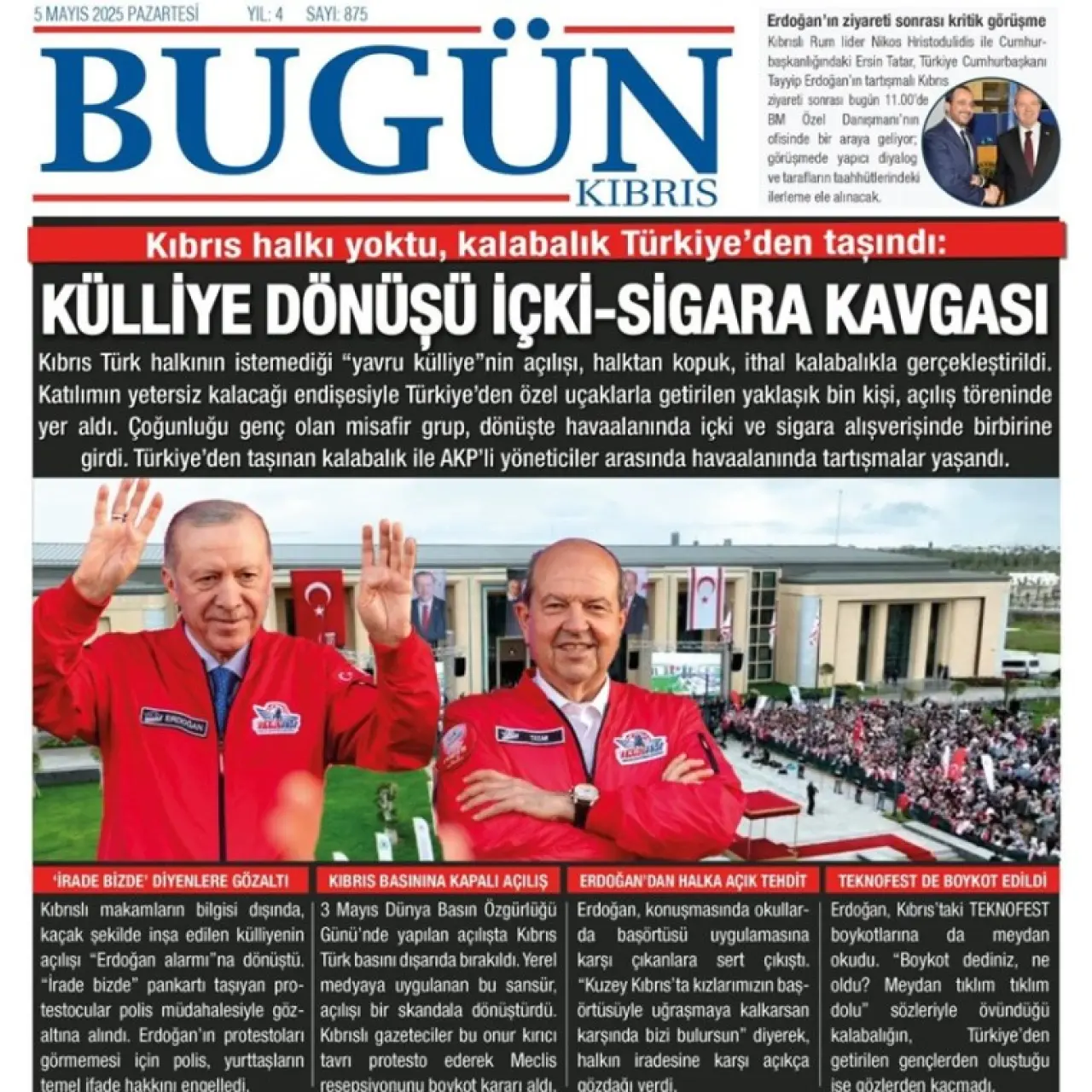 Lefkoşa’da yapımı tamamlanan KKTC Cumhuriyet Yerleşkesi’nin açılış törenine Cumhurbaşkanı Erdoğan da katıldı. Ancak açılışa halkın ilgisinin düşük olacağı öngörülerek Türkiye’den yaklaşık bin kişinin özel uçaklarla adaya götürüldüğü öne sürüldü. KKTC merkezli Bugün Kıbrıs gazetesinin haberine göre, törene katılan kalabalık çoğunlukla gençlerden oluştu.