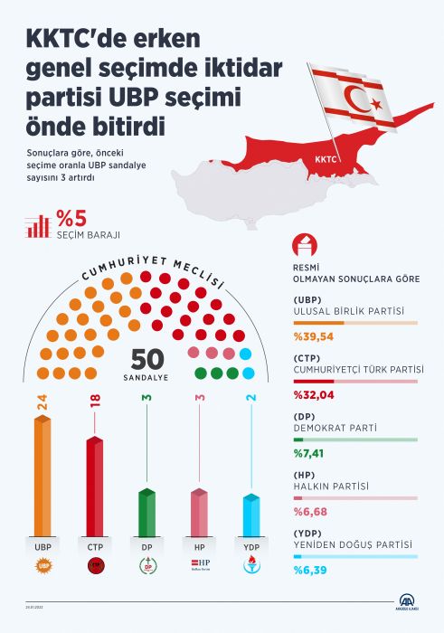 Kuzey Kıbrıs Türk Cumhuriyeti'nde (KKTC) dün gerçekleştirilen erken genel seçim sonuçlarına göre, 50 sandalyelik Cumhuriyet Meclisine girmeye hak kazanan milletvekilleri belli oldu.