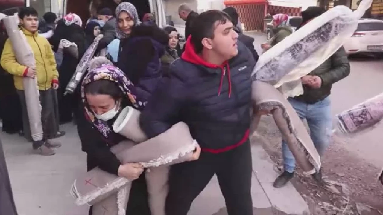 Görevliler, gelen kişileri sıraya sokmakta güçlük çekince minibüsün arka kapısından halılar atıldı. Vatandaşlar, halılardan almak için kendi aralarında büyük mücadele verdi. Yaşanan izdihamda bazı kişiler arasında tartışmaların yaşandığı görüldü.