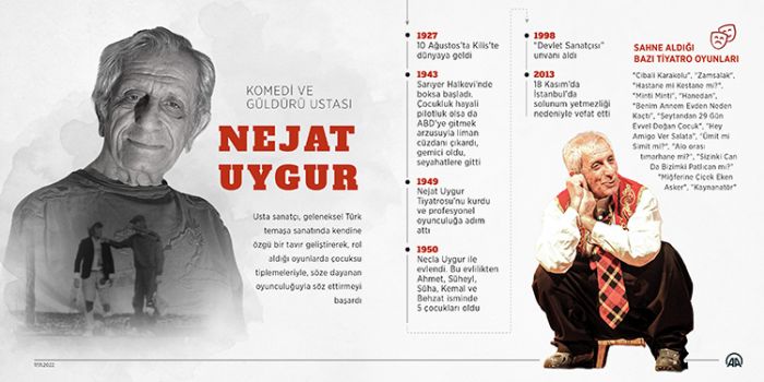 Tiyatroda oynadığı karakterler, esprileri ve samimi tavırlarıyla izleyicinin kalbinde yer edinen oyuncu ve komedyen Nejat Uygur'un vefatının üzerinden 9 yıl geçti.