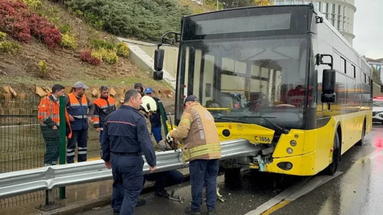 D-100 karayolu Harem istikametinde ilerleyen İETT otobüsü, Acıbadem Metro İstasyonu durağına yanaşırken sürücüsünün kontrolünden çıkarak yol kenarındaki bariyere çarptı.